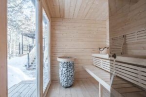 Interiér je zpracován s důrazem na detail a dlouhou životnost. Přirozené vlastnosti dřeva zajišťují příjemné suché teplo a stabilní mikroklima. HIGI XL je ideální pro rodiny i přátele – místo, kde se zpomalí čas a vrátí se rovnováha.